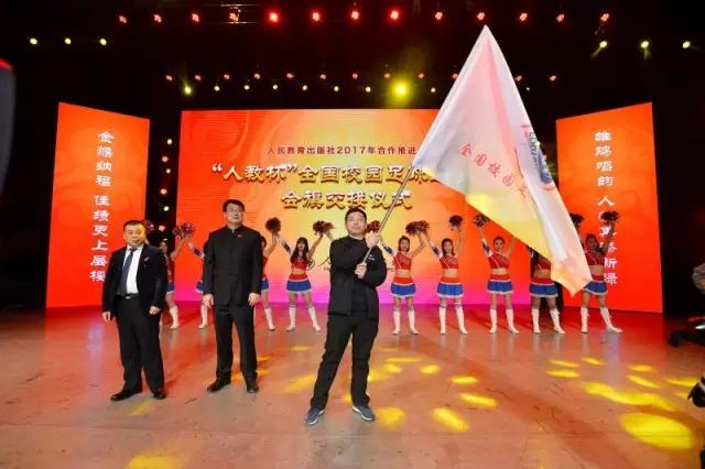 会上,何志勇董事长被评为“感动人教2016年度人物”,新华文轩被评为“感动人教——2016年度钻石合作伙伴”,李强副总经理代表公司领奖。年会还举行了“人教杯”全国中小学校园足球邀请赛会旗交接仪式,通过文轩协调,第二届“人教杯”全国中小学校园足球邀请赛将落户绵阳,绵阳市教体局刘成福同志代表绵阳市教体局参加年会并在会旗交接仪式中接旗。