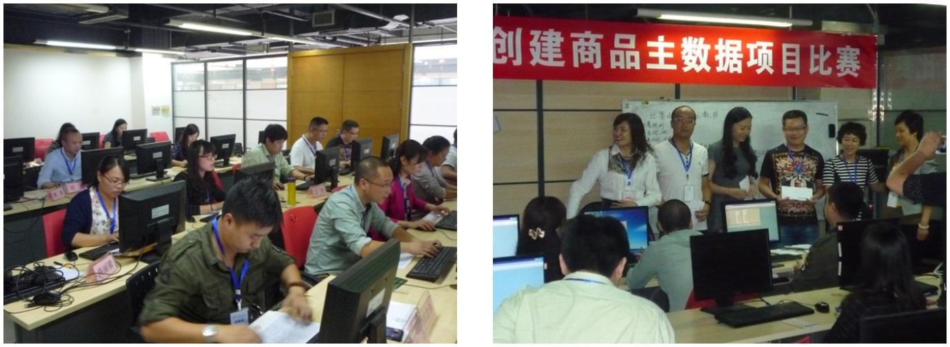 为了保证创建商品主数据比赛成功进行,项目组在对选手进行培训的基础上,于8月27日下午组织进行了模拟比赛。来自采购中心、信息中心、教育服务事业部、四川教育出版社的选手齐聚公司培训室。在裁判再次讲解比赛规则后,随着一声“开始”,选手们立即进入模拟赛,赛场充满了噼噼啪啪的键盘声,选手全神贯注、动作熟练的将分配到的主数据条目一条条录入到系统中。10分钟的比赛时间瞬间就到,大多选手对结果表示满意,并对比赛中需要改进的规则提出了看法。