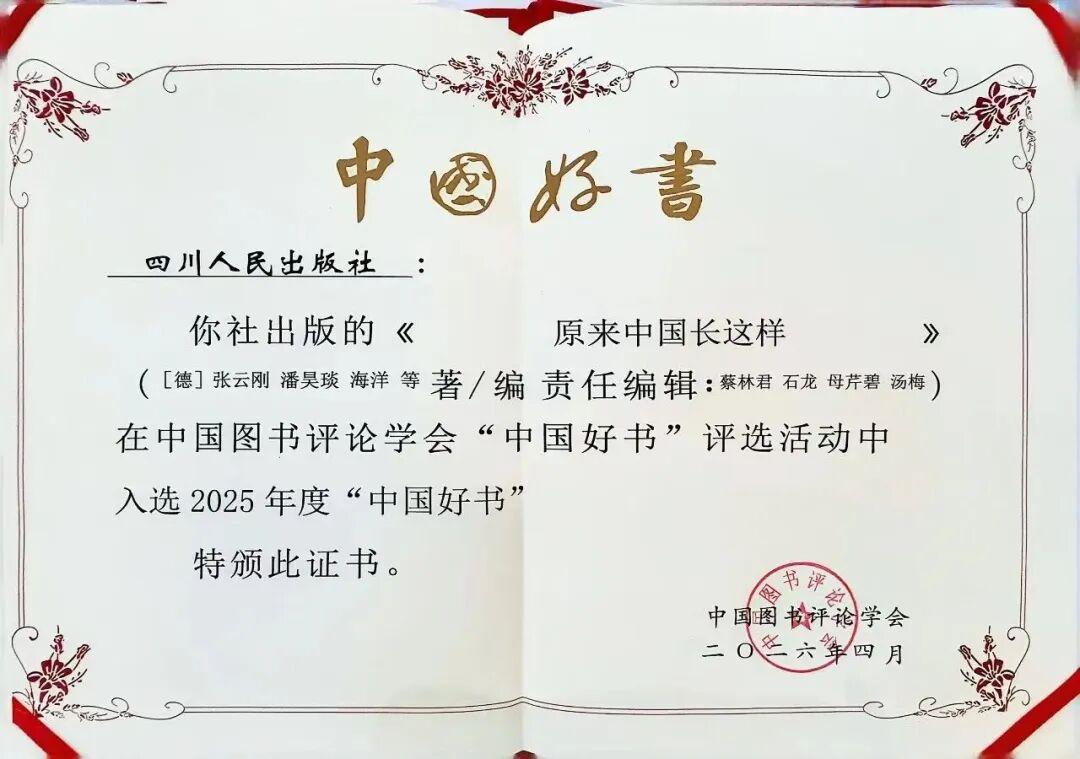 其中,新华文轩旗下四川人民出版社出版的《原来中国长这样》入选2025年度“中国好书”。