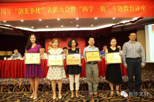 6月27日下午,新华文轩出版传媒股份有限公司在新华国际酒店召开庆祝建党95周年“创先争优”表彰大会暨“两学一做”专题教育讲座。四川新华发行集团党委委员、总裁、新华文轩出版传媒股份有限公司董事长何志勇,四川新华发行集团党委委员、副总裁张成行,新华文轩出版传媒股份有限公司总经理杨杪,党委书记李晓列等公司党委委员,文轩各党委、党总支、党支部代表以及获得表彰的先进集体代表、先进个人等共200余人出席会议。