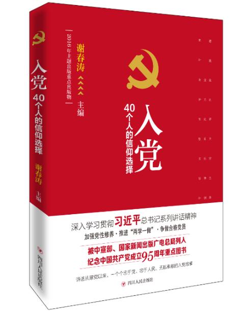 四川人民出版社《入党》(谢春涛主编)讲述了老一辈无产阶级革命家如何加入中国共产党的故事,这些革命家包括吉鸿昌、邹韬奋、沈雁冰、梁思成、宋庆龄、焦裕禄等。通过他们参加革命所经历的艰辛曲折之路,以及入党后对共产党对革命的无私贡献,以此来激励年轻人加入中国共产党,为共产主义的伟大事业而奋斗和努力。