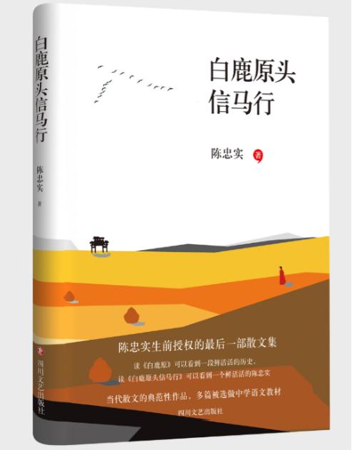 陈忠实先生生前授权的最后一部作品《白鹿原头信马行》落户四川文艺出版社。该书收录了先生从20世纪80年代后期至今30年间的70多篇散文。作品中既有对于一草一木一虫一鸟的精细描绘,也有对于自己所到之处的速写;既有对于关中大地、西安古城的建议和辩正,也有对于白鹿原下老宅生活的记录和对自己内心的剖析;既有入选教材、中学语文阅读试卷的典范作品,也有之前传播不很广泛的优秀文章……整个作品展现了陈忠实30年间的生活和创作的整体面貌,是读者了解陈忠实的一面镜子,也是我们记录陈忠实的上好素材。