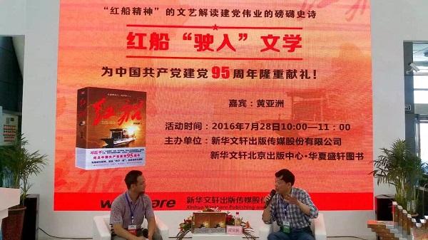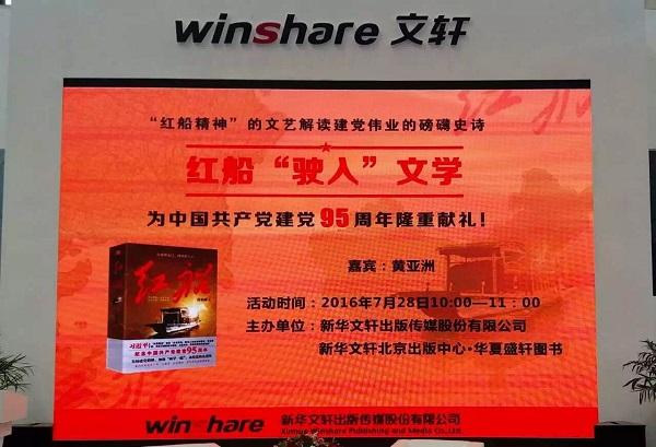 红船劈波行,精神聚人心。2016年7月28日,新华文轩为纪念建党95周年精心打造的《红船》一书新书发布活动,在内蒙古包头市第二十六届全国书博会四川展场隆重举行。活动的主题为红船“驶入”文学,并特邀本书作者、著名作家黄亚洲到活动现场,分享创作历程和创作体会。