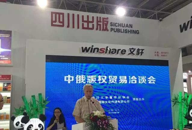8月24日下午,在第23届北京国际图书博览会四川展区,文轩旗下文轩国际文化传播有限公司联手中国文字著作权协会共同举办以“激活版权市场,增强版权交流”为主题的“中俄版权贸易洽谈会”。俄罗斯出版商协会副主席奥列格•菲利蒙诺夫(Олег Филимонов Вмце-президент АСКИ)携俄罗斯科学院科学出版社、东方文学出版社、全世界出版社、联合人文出版社等出版界代表10余人参加洽谈会,文轩、人民出版社、辽宁出版集团、北京大学出版社等国内多家出版机构代表也参加了此次活动。