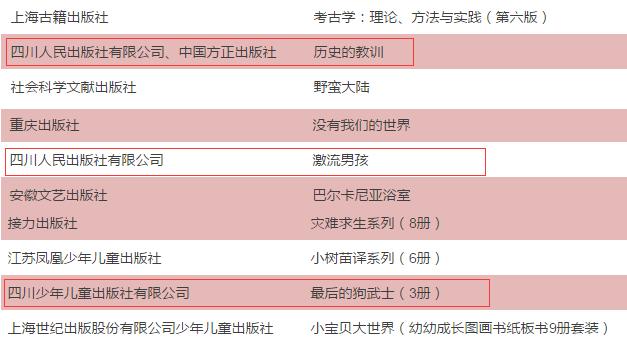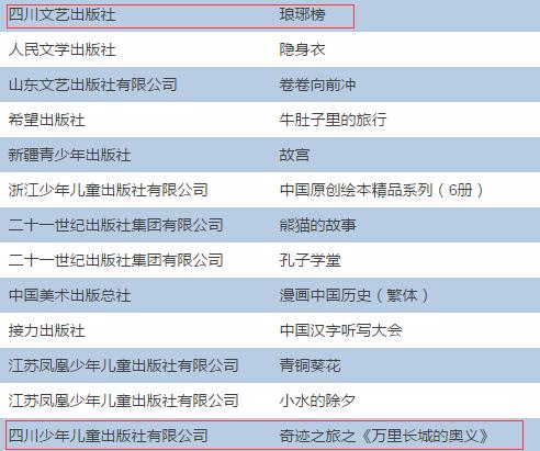 9月7日,《出版参考》杂志对“第十五届输出板、引进版”优秀图书评选活动的获奖名单进行了公示,新华文轩旗下四川文艺出版社的《琅琊榜》和四川少年儿童出版社的《奇迹之旅之〈万里长城的奥义〉》入选“第十五届输出版优秀图书”;四川人民出版社的《历史的教训》《激流男孩》和四川少年儿童出版社的《最后的狗武士》入选“第十五届引进版优秀图书”。