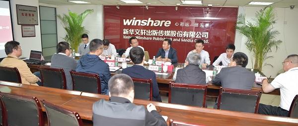 10月26日下午,中国南山开发集团赵建潮副总经理、宝湾物流控股有限公司总经理舒谦一行赴新华文轩出版传媒股份有限公司洽谈交流。文轩董事长何志勇、总经理杨杪、董事赵俊怀、采购总监赵学锋以及运营中心、战略企划部、物流中心的相关负责人参加了洽谈交流会谈。交流会由文轩总经理杨杪主持。