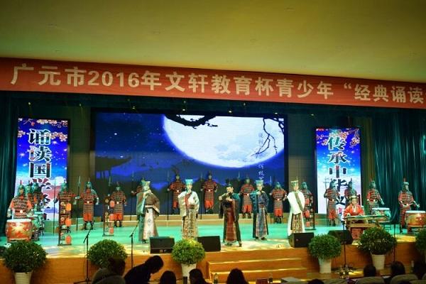 11月11日上午,由广元市市委宣传部、市教育局、市精神文明建设办公室、市文化广电新闻出版局、市语言文字工作委员会、市全民阅读活动指导委员会办公室6家单位主办,新华文轩广元市公司承办的2016年文轩教育杯青少年“经典诵读会”在川师大万达中学成功举行。广元市市委宣传部副部长向志纯、市教育局副局长赖永红、市文化广电新闻出版局副局长李谨,新华文轩教育服务事业部教材中心市场部副经理刘伟、广元市公司总经理张洪斌,万达中学执行校长杨宇恒等领导嘉宾出席了活动。