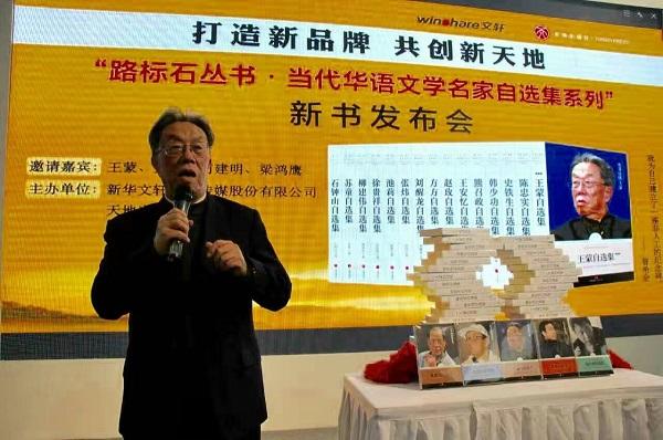 接着举行的是“路标石丛书·当代华语文学名家自选集系列”新书发布仪式。天地出版社经过充分的市场调研和筹划,在现场精心推出“路标石丛书·当代华语文学名家自选集系列”,这既是天地出版社与华夏盛轩公司整合后的开篇之作,也是献给“振兴四川出版”的一份厚礼。