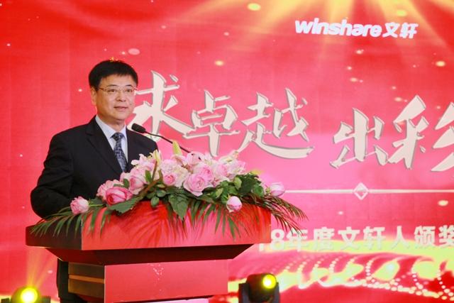 最后,朱丹枫董事长为全体文轩人送上新年寄语,他首先代表集团党委向获奖先进个人及单位表示热烈祝贺,对新华文轩公司全体员工表示衷心感谢。他表示,今天颁奖典礼上呈现的一幅幅画面、一组组数据令人欣喜,特别是出版板块收获颇丰,引导读者、影响市场的高质量作品越来越多,市场占有率不断提升,这份成绩来之不易,是所有文轩人辛勤努力、精心策划的结果,这不仅展示了文轩在助力四川文化强省战略中所做出的贡献,更向文化市场和行业展示出强劲的文轩力量。他希望新华文轩在新的一年中能进一步扩大品牌影响力,不断探索,勇于创新,打造更多优秀的文化品牌,担负起传承中华优秀传统文化、传播社会主义先进文化的责任,成为四川文化产业发展的主力军、新引擎。