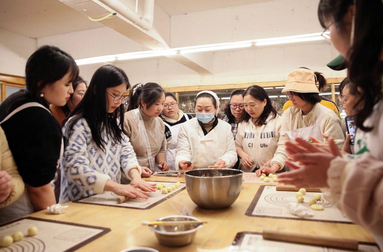 面团、酥皮、豆沙蛋黄馅……一切准备就绪。烘焙活动现场,专业的烘焙老师首先讲解了烘焙基础知识和制作方法,尤其是在烘焙过程中需要注意的细节,然后进行了现场演示。大家先是聚精会神地观看老师的示范动作,接着便纷纷发挥自己的创造力,兴致勃勃地大展身手,最终制作出了专属于自己的香甜可口的蛋黄酥,体会烘焙乐趣的同时收获了甜蜜。