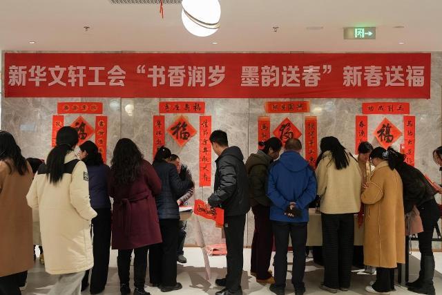 值此新春佳节来临之际,为营造欢乐喜庆的节日氛围,2月7日至9日,新华文轩工会先后在成都购书中心、西南书城、天府书城、文轩Books成华店、新华之星A座3楼食堂组织开展了“书香润岁 墨韵送春”新春送福活动。