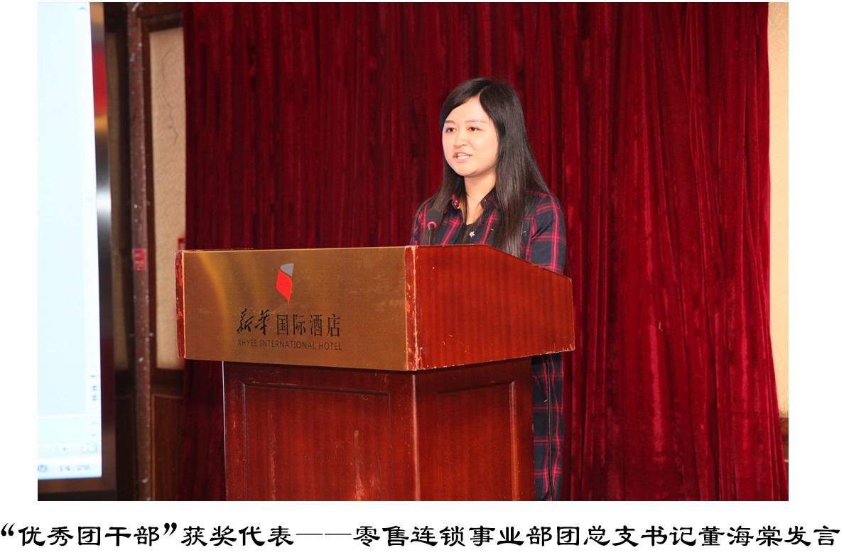 大会在激情高亢的国歌和团歌声中拉开帷幕,在公司团委书记汪晓玲宣读完表彰决定后,由出席活动的领导嘉宾分别为获得2016年度“优秀共青团员”、“优秀团干部”、“优秀团总支/团支部”的个人和集体颁奖。廖双等18名青年团员荣获“优秀共青团员”荣誉称号;董海棠等7名团干部荣获“优秀团干部”荣誉称号;零售连锁事业部团总支等5个基层团组织荣获“优秀团总支/团支部”荣誉称号。通过表彰先进,以激励公司广大青年团员努力形成“创先争优、积极向上”的良好氛围,不断提升公司青年队伍的整体素质,促进公司的企业文化建设。