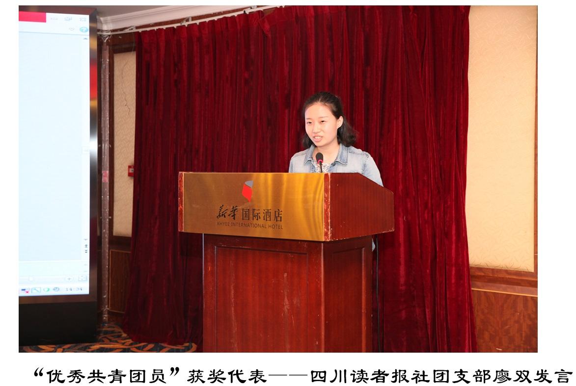 颁奖仪式结束后,获奖的先进代表上台进行了发言。“优秀团总支”获奖代表——零售连锁事业部团总支副书记庾晋就零售团总支的组织建设、团员业余文化活动的丰富开展以及团员团结向上、锐意进取精神的发扬等方面与参会者作了交流;“优秀团干部”获奖代表——零售连锁事业部团总支书记董海棠从零售团总支工作开展的组织保障、如何与经营工作实际相结合并促进经营工作以及一个优秀团干部的培养等方面与参会者分享了经验;“优秀共青团员”获奖代表——四川读者报社团支部廖双围绕本职工作,通过不断地努力学习、提升能力并做出成绩来实现自我价值,给参会者刻画了一个“优秀文轩人”的形象。